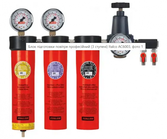 Фільтр повітр. з редуктором потрійний AC6003 (italco) очищення від води, олив, мікрочасток 0,01 мі